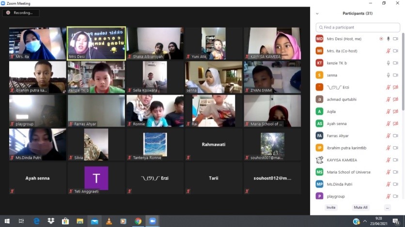 Pertunjukan drama akhir tahun PG-TK "Corona Pulang Kampung" ini dipertunjukan secara daring menggunakan aplikasi zoom pada hari Jumat 23 April 2021 yang diikuti sekitar 35 lebih penonton. Bagi teman-teman yang masih penasaran bagaimana keseruan drama tersebut, bisa dilihat di youtube channel PGKG SoU Official.