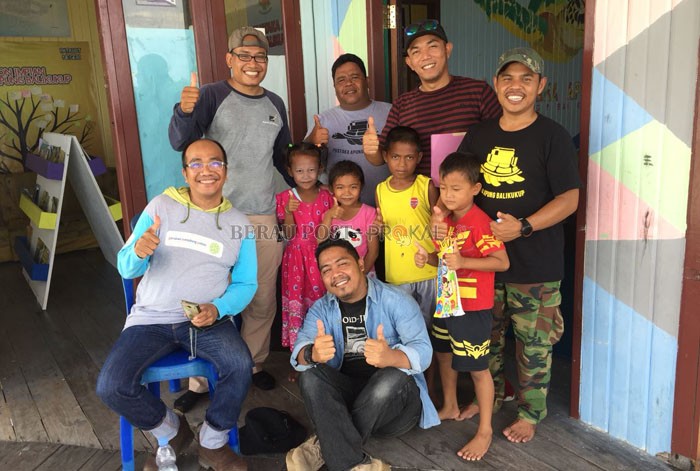 Tiba di Balikukup, Lendo bersama tim langsung bertemu kepala kampung, guru-guru SD dan Maaruf, salah satu patriot negeri yang masih bertahan di Berau.