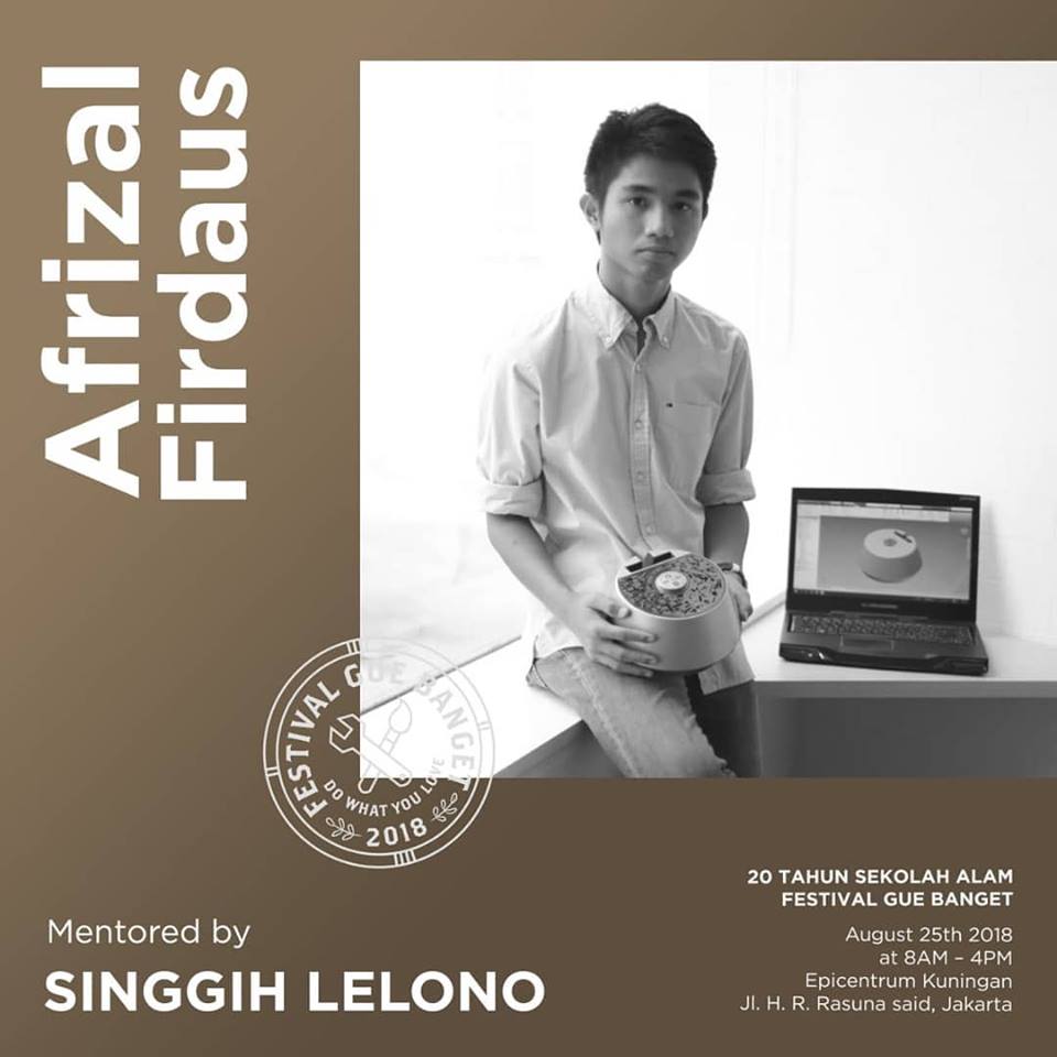 Sang Maestro, bapak Singgih Lelono puas dengan design yang sudah dimunculkan untuk SIPESAT yang ditemukannya. Sebuah Sistem Pengolahan Sampah Terpadu yang sudah diterapkan dan sukses di banyak tempat seperti sekolah, perkantoran dan lain-lain, di redesain oleh Afrizal sehingga lebih chic dan fungsional. Sebelumnya Afri juga membuat karya bluetooth speaker dengan desain etnic dari etsa logam.