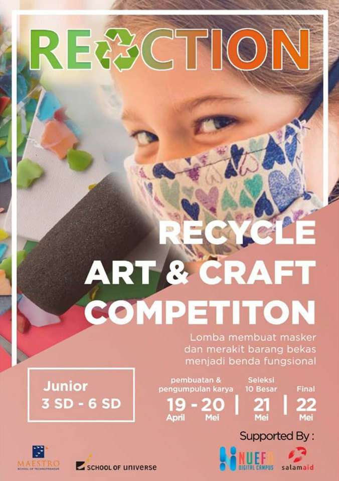 Salah satu kegiatan kampanye penggunaan dan pengolahan sampah atau barang bekas menjadi barang yang bermanfaat diwujudkan oleh Sekolah Alam School of Universe dalam bentuk kegiatan bernama Re-Action. Re-Action adalah REcycle Art and Craft CompetiTion, sebuah lomba merekayasa material barang bekas menjadi produk yg useful dan artistik.