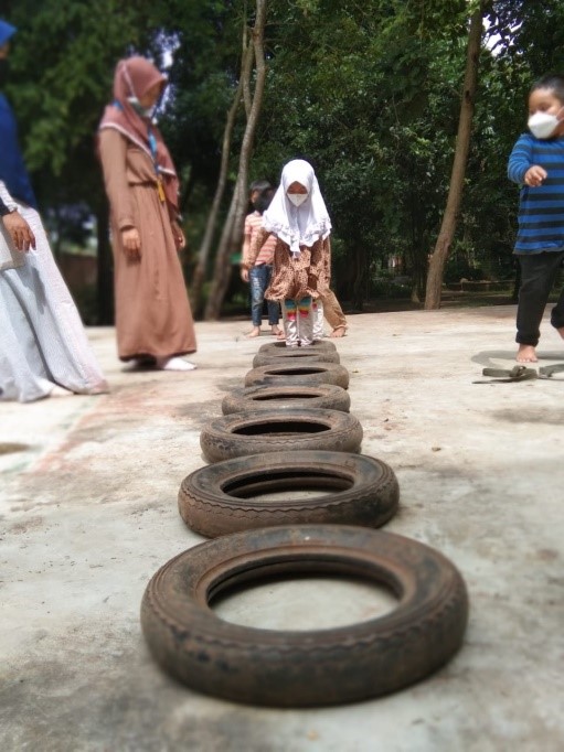 Selesai memasang tenda dilanjutkan dengan snack time dan berlanjut ke kegiatan outbound. Untuk kegiatan outbound yang pertama yaitu tracking. Tracking kali ini kita hanya berkeliling di sekitar lingkungan SoU sambil mengenal dan mempelajari tumbuhan-tumbuhan yang ada di SoU sambil menyuarakan yel-yel yang dibuat oleh masing-masing kelompok, wahhhh sangat mengasikkan kan tentunya. Nahhh setelah tracking teman-teman diminta untuk istirahat, shalat duhur dan makan siang, selesai ishoma teman-teman melanjutkan kegiatannya, yaitu outbound, kali ini outboundnya adalah two line bridge dan landing net. Disini teman-teman dilatih keberaniannya dan konsentrasinya. Oh iya perlu diketahui teman-teman bahwa setelah selesai dan sebelum kegiatan seluruh area yang kita gunakan di semprot oleh disinfektan.