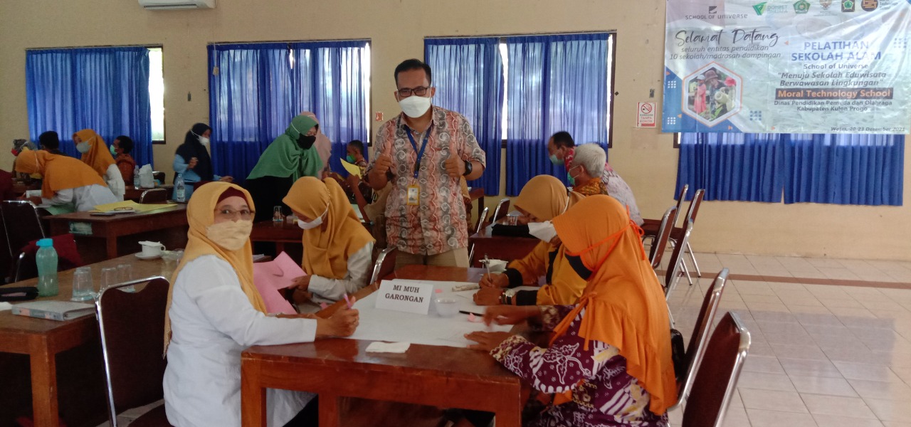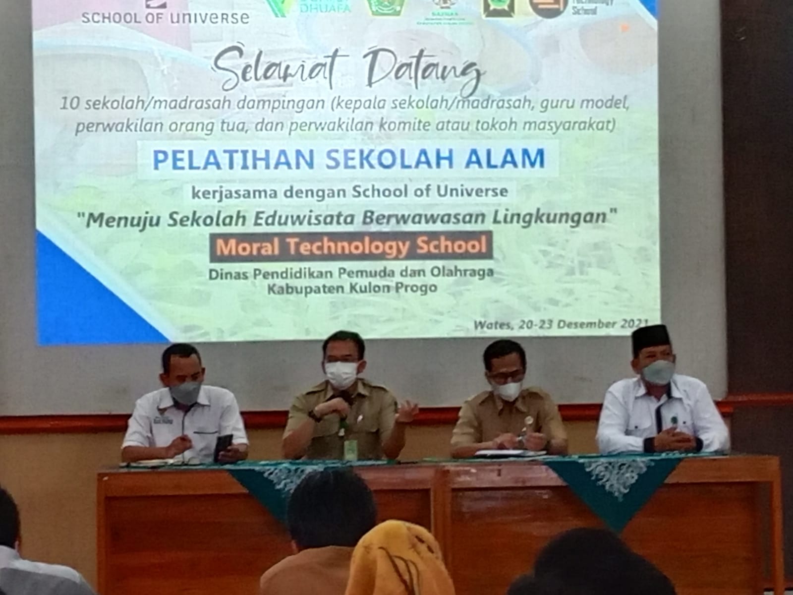Kulon Progo (MIMUHGA) – Sebagai salah satu sekolah yang menerima program MT School maka empat peserta dari MI Muhammadiyah Garongan terdiri Kepala Madrasah, Guru Model, Perwakilan Pengurus Komite, dan Perwakilan Paguyuban Orangtua mengikuti pelatihan sekolah alam dengan tema tahapan perwujudan sekolah dampingan menuju Eduwisata berwawasan Lingkungan/Sekolah Ekologi/Ecoschool. Kegiatan tersebut diselenggarakan oleh Dinas Dikpora Kulon Progo dalam program Moral Technology School. Pelatihan berlangsung pada Senin-Kamis (20-23/12/2021) di Ruang Sadewa Dinas Dikpora Kulon Progo. Pelatihan tersebut dibuka oleh Kepala Dinas Dikpora, dan dihadiri Ketua Baznas serta Kasi Dikmad Kankemenag Kulon Progo.